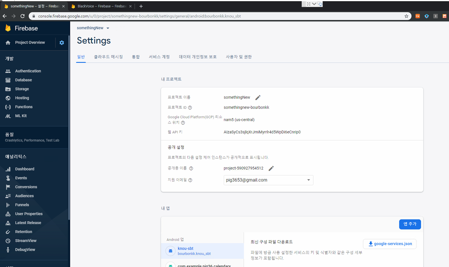 파이어베이스에 등록이 된 상태입니다.