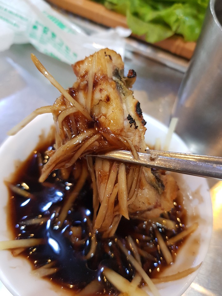 그리고 나서 장어를 촥~ 생강과 곁들여 드시면 아주그냥 죽습니다.