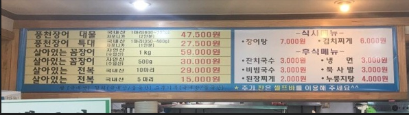 가격표입니다 뭔가 비싸보이지만 무조건 대물을 드세요 후회안합니다.